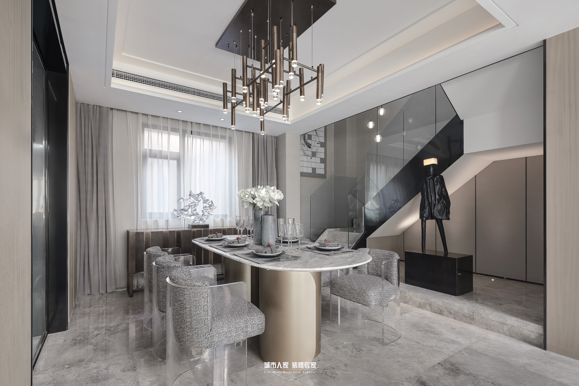 設計團隊結合空間自身特征,秉持大道至簡的哲學,寧神靜氣沉密神采,重現詮釋當代簡約風格。倡導純粹、自然、極簡,堅持給空間留白,給藝術留空間。